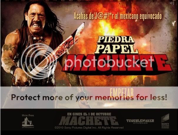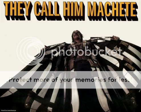 Machete es una pelicula América de acción co-escrita, producida y dirigida por Robert Rodriguez y Ethan Maniquis. Se trata de una expansión de un falso trailer que fue lanzado junto con Rodríguez y Quentin Tarantino's 2007 Grindhouse. Machete continúa la serie B y el estilo de la explotación de "Grindhouse",[5] incluyendo, en parte, el mismo metraje. Danny Trejo estrellas en su primera ventaja papel como el personaje del título. También jugó un personaje llamado Machete en el Spy Kids franquicia, que Rodríguez también dirigió.